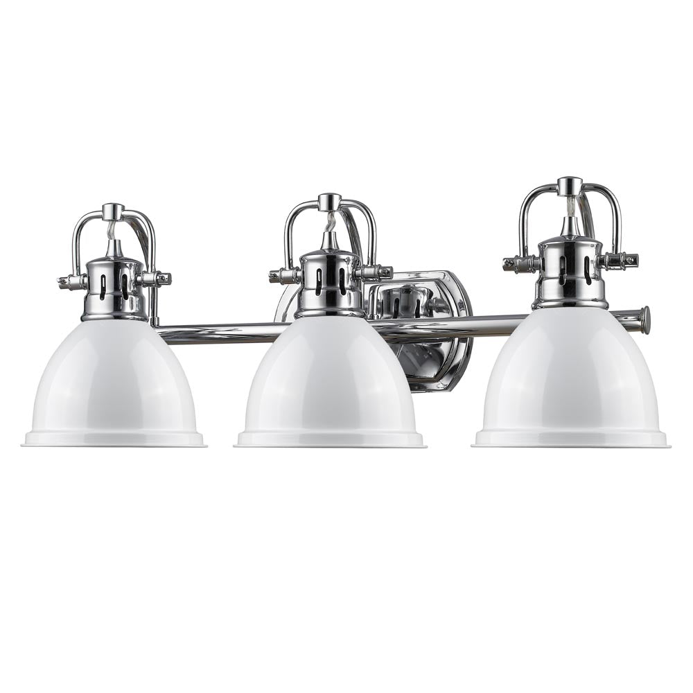 Duncan 3 Light Bath Vanity in Chrome with a White Shade