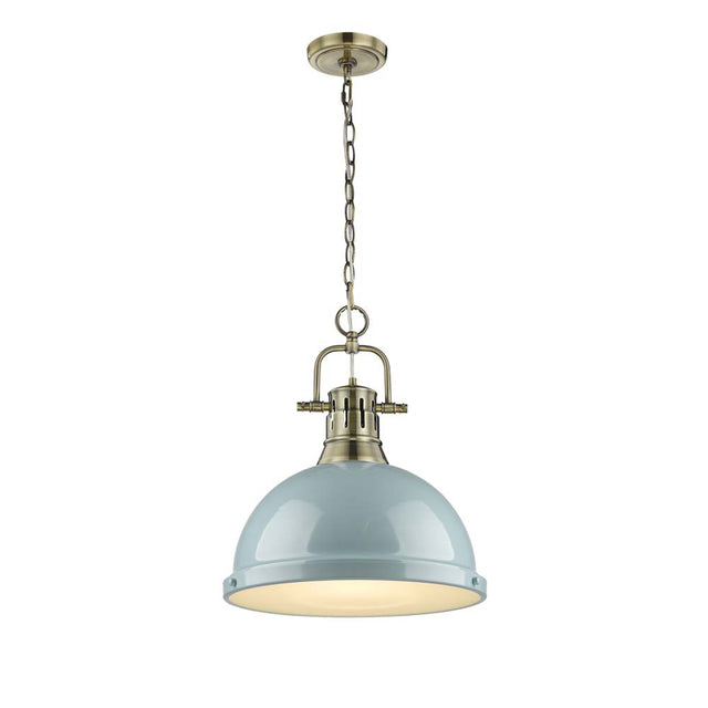 Duncan 1 Light Pendant with Chain in Aged Brass with a Seafoam Shade