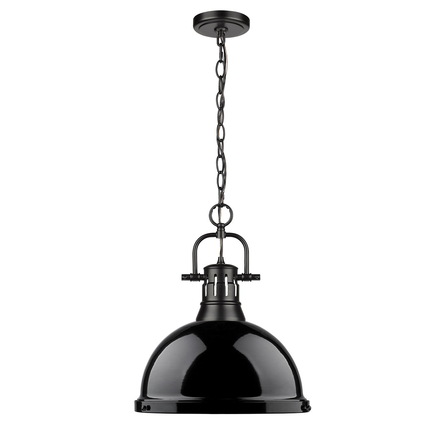 Duncan 1 Light Pendant with Chain in Black with a Black Shade