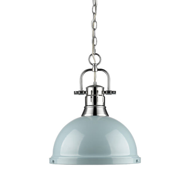 Duncan 1 Light Pendant with Chain in Chrome with a Seafoam Shade