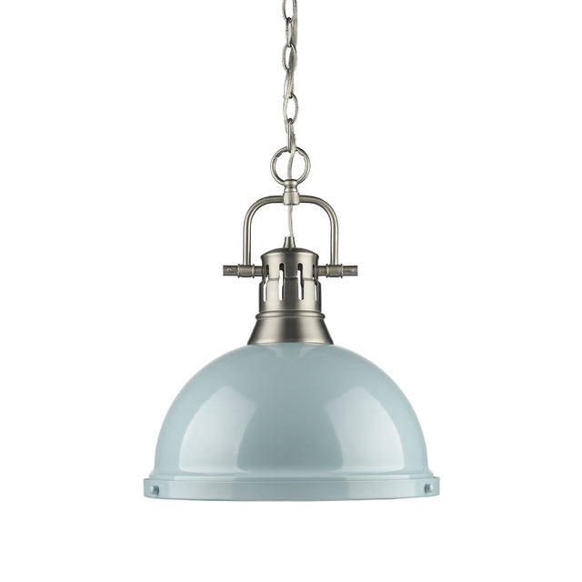Duncan 1 Light Pendant with Chain in Pewter with a Seafoam Shade