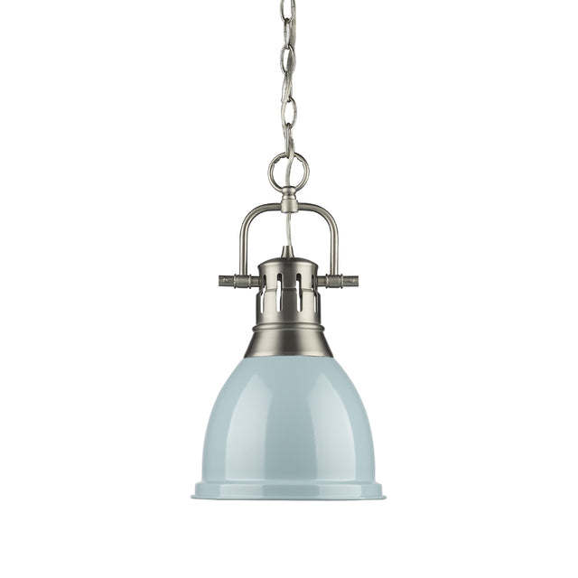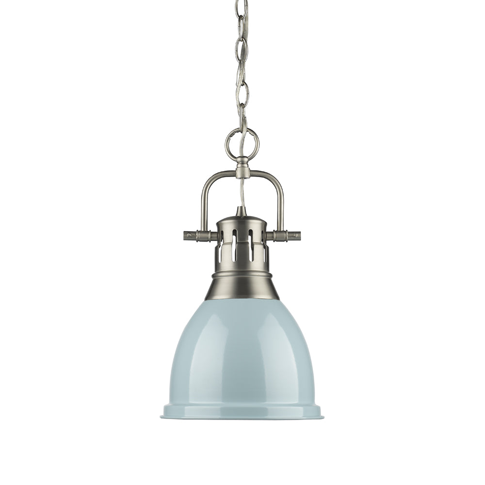 Duncan Small Pendant with Chain in Pewter with a Seafoam Shade