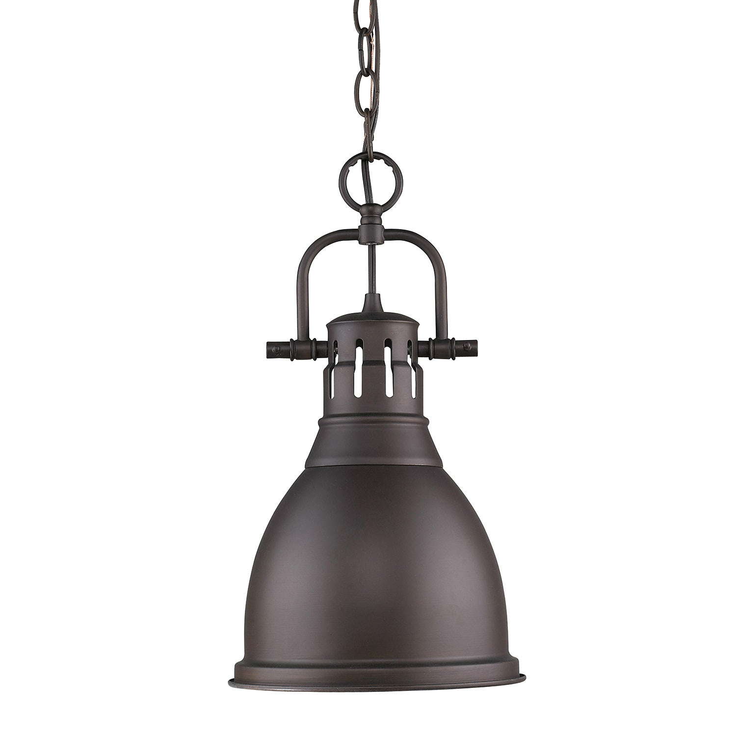 Duncan Small Pendant with Chain in Rubbed Bronze with a Rubbed Bronze Shade