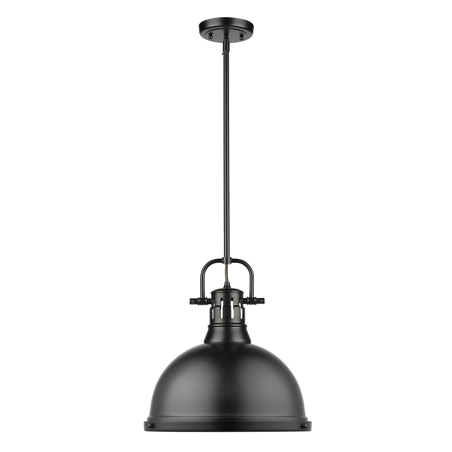Duncan 1 Light Pendant with Rod in Matte Black with a Matte Black Shade
