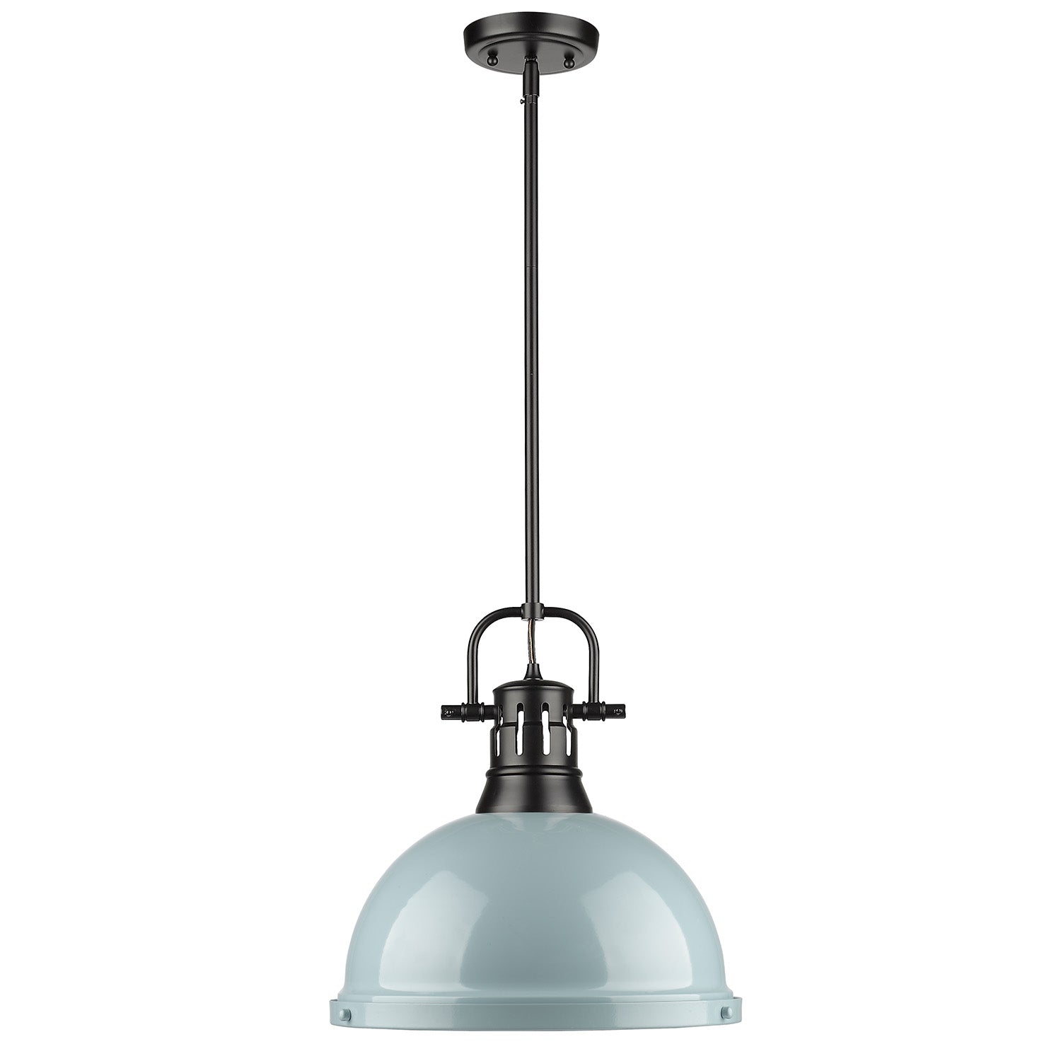 Duncan 1 Light Pendant with Rod in Matte Black with a Seafoam Shade