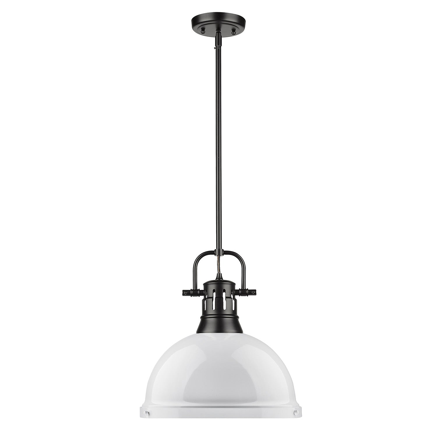 Duncan 1 Light Pendant with Rod in Matte Black with a White Shade