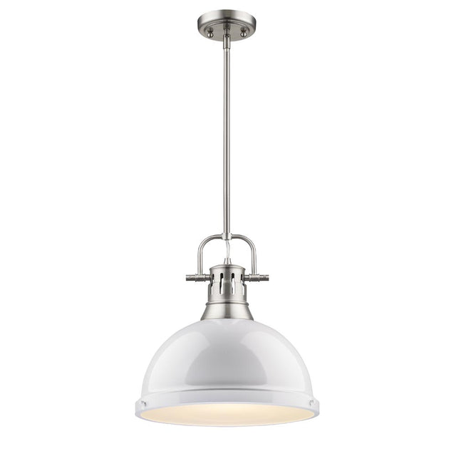 Duncan 1 Light Pendant with Rod in Pewter with a White Shade