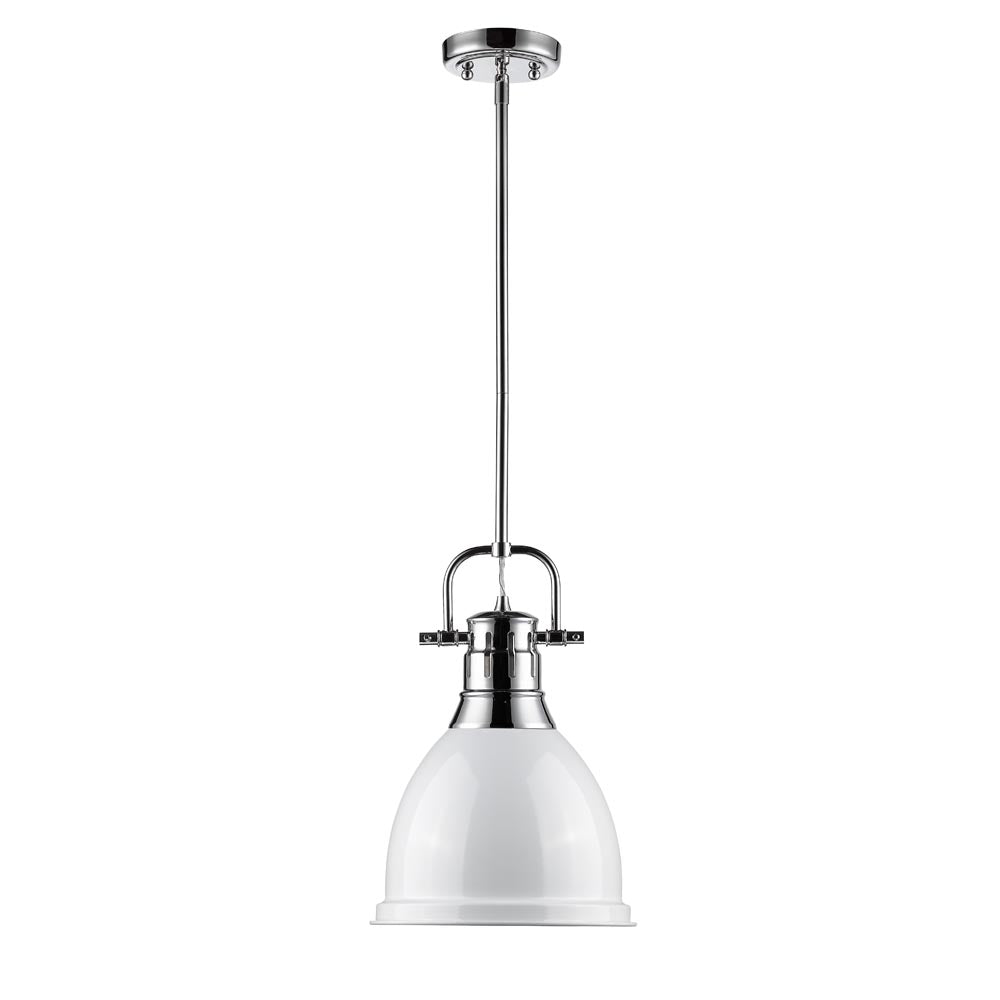 Duncan Small Pendant with Rod in Chrome with a White Shade
