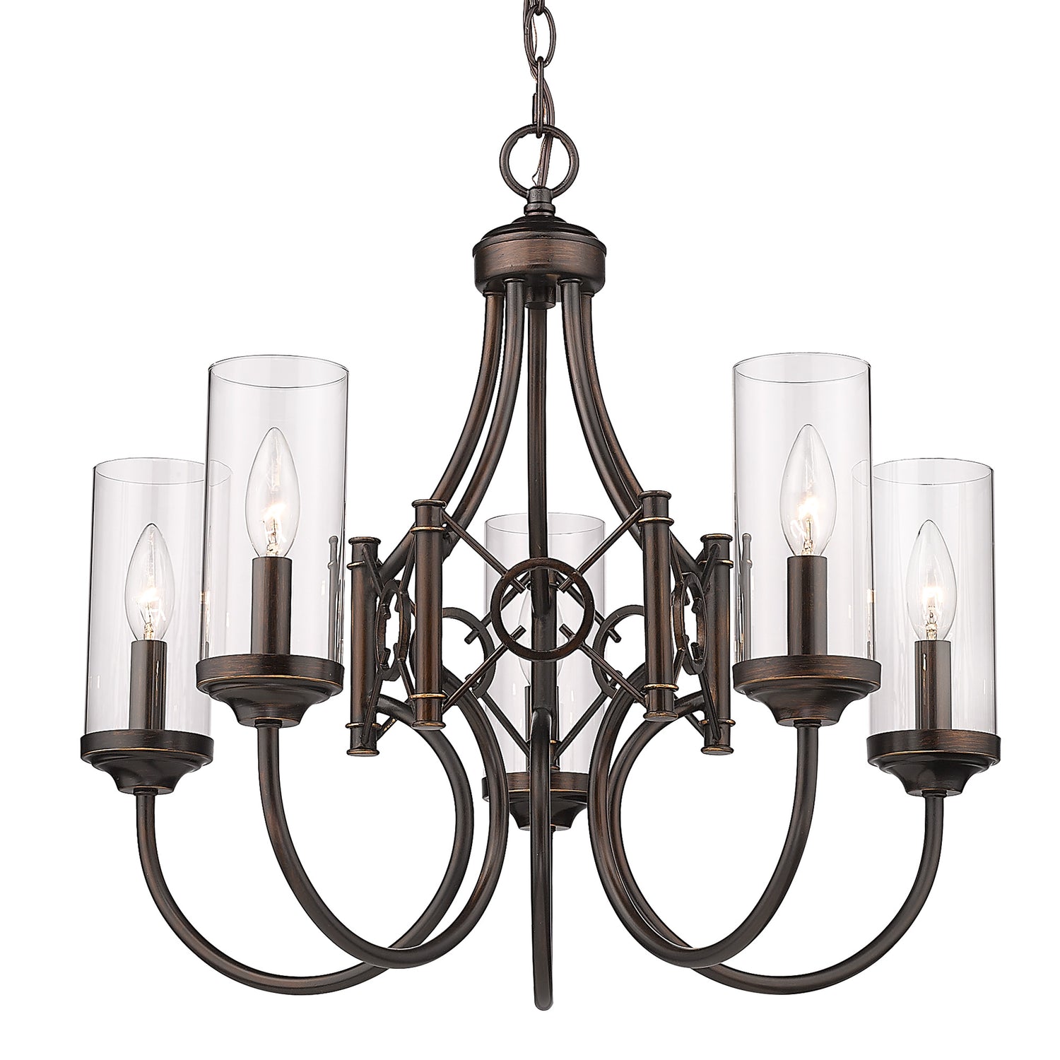 Quincy 5 Light Chandelier in Cordoban Bronze with Clear Glass Shades