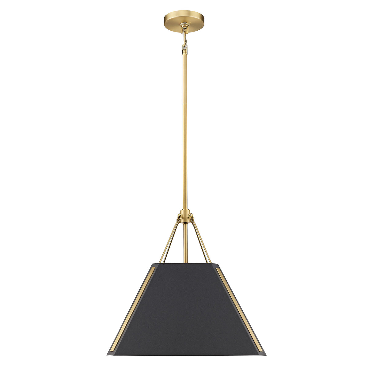 Add drama to your space with the stylish Ranik pendant. Sleek and modern, the fixture features a textured metal shade in a Natural Black finish to contrast the smoothness of the beautiful Brushed Champagne Bronze hardware. Matching strips of gold give the geometric shades a refined, tailored feel. The wide, open bottom of the elegant shade allows for bright task and ambient lighting. Hang the pendant alone or create a stunning look with multiple fixtures.