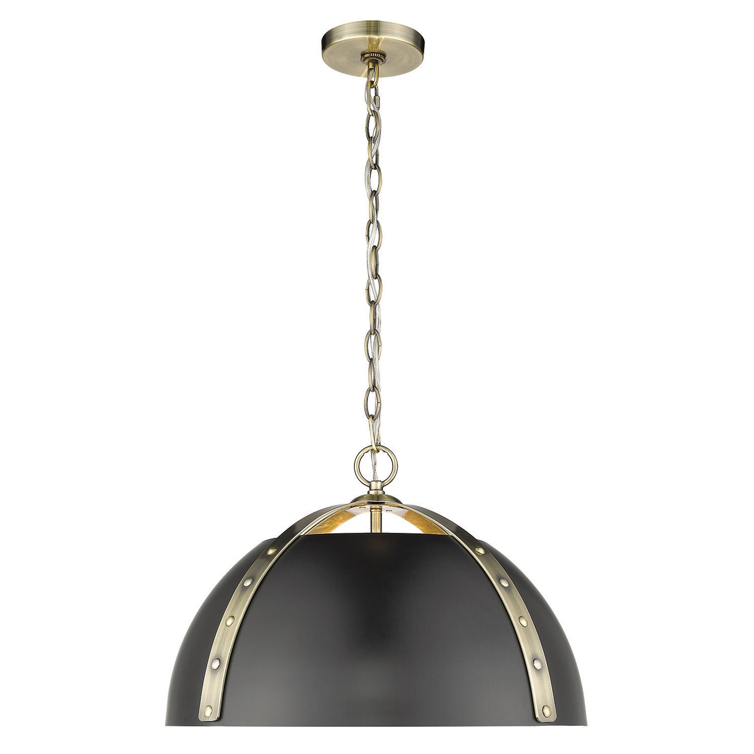 Finally, fashion meets function in a refined, oversized dome pendant with the ability to cast ample light. Aldrich is a stylish collection of industrial-inspired pendants designed to push bright ambient and task light through the tops and bottoms of metal shades. Heavy-duty rivets provide aesthetic appeal and utility, securing the matching wide steel straps to the coordinating shade. Created to complement a wide variety of interior styles, from modern to rustic, these pendants are available in multiple finish combinations. The frame is offered in multiple finishes with a selection of different shades to complete the look. This 3-light pendant is perfect for intimate settings or in a large, open kitchen.