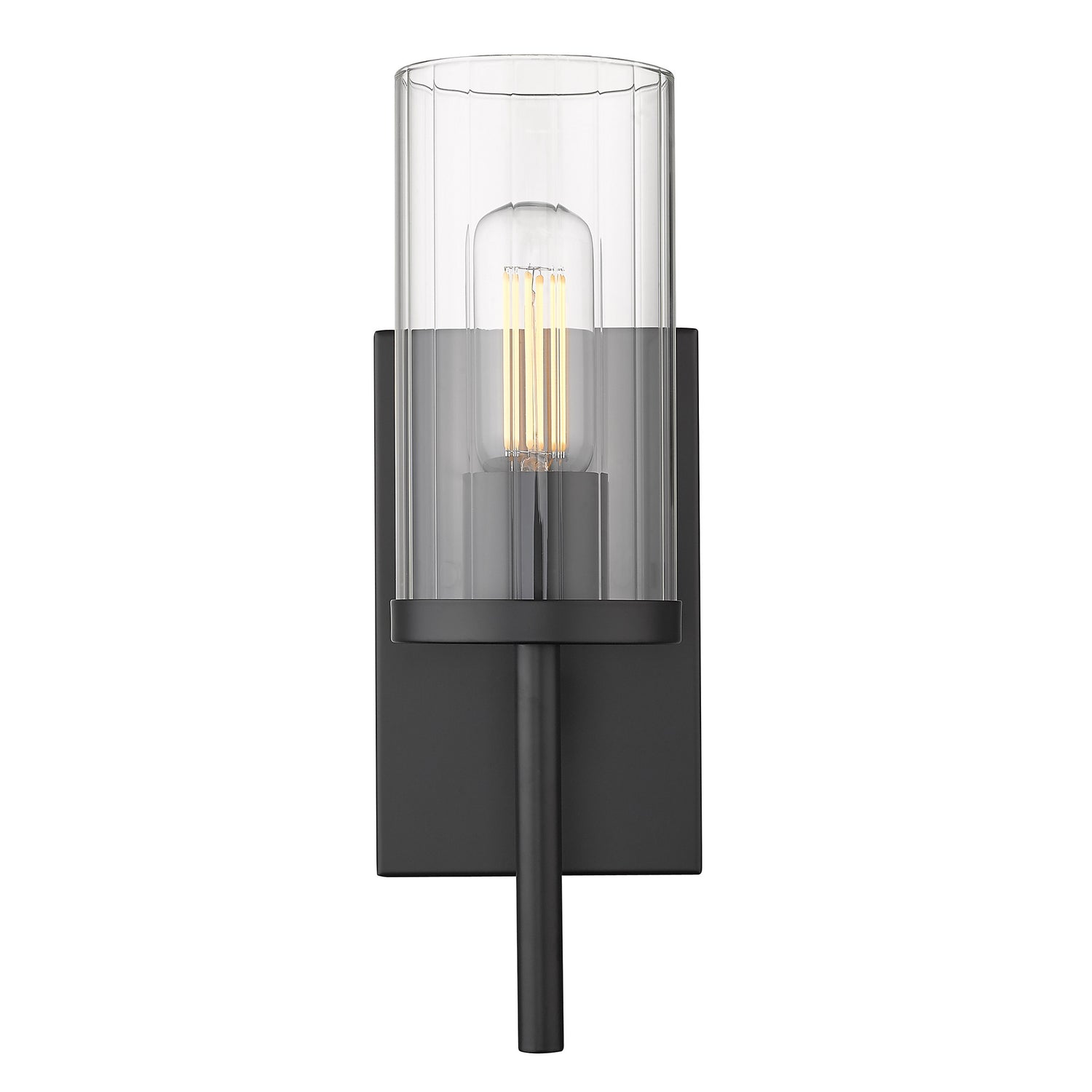 Winslett Wall Sconce in Matte Black with Ribbed Clear Glas Shade