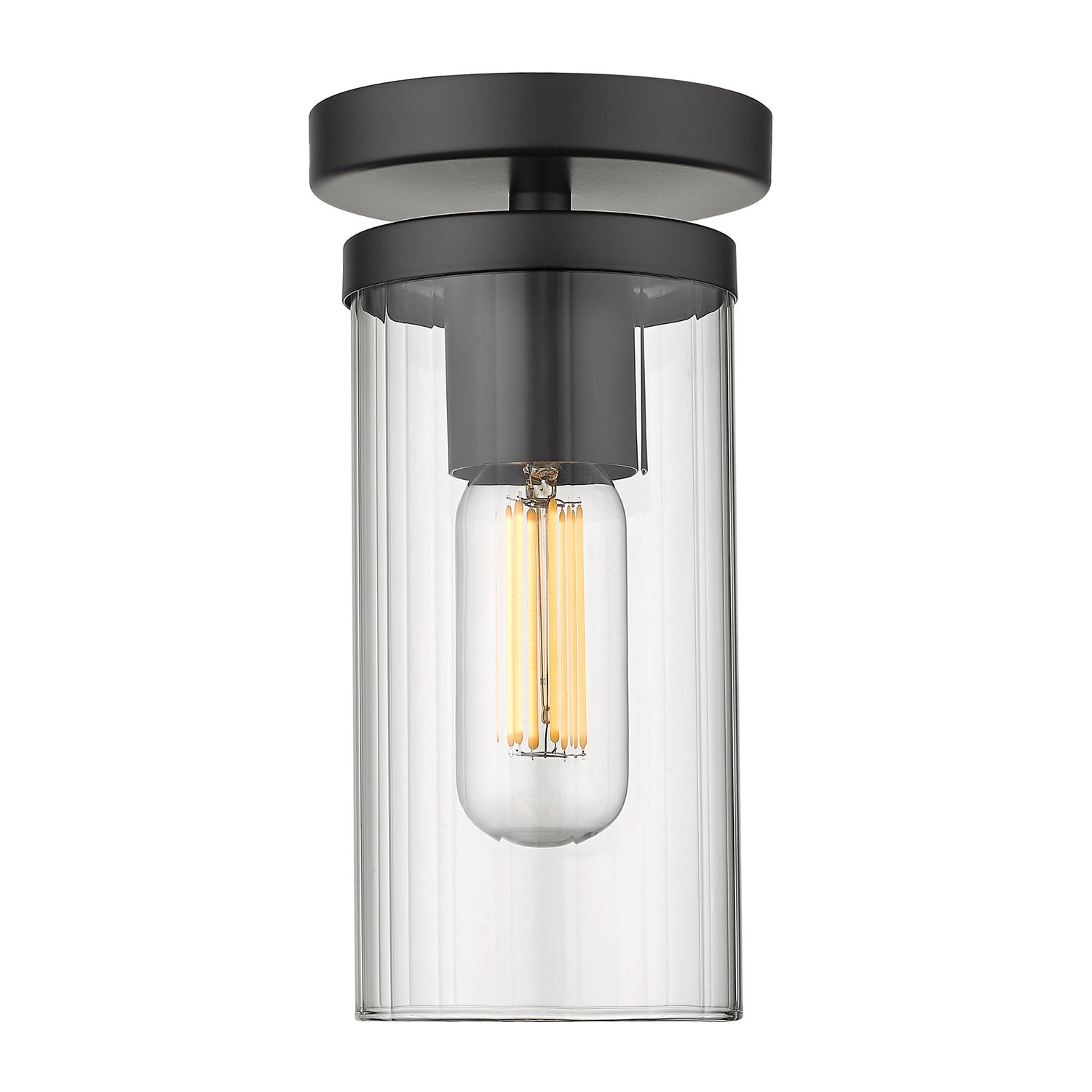 Winslett Semi-Flush in Matte Black with Ribbed Clear Glass Shade