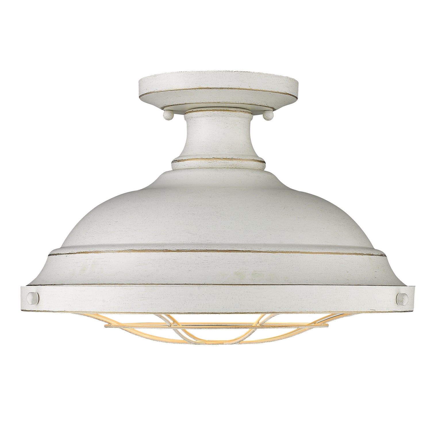 The Bartlett collection features industrial, vintage-inspired fixtures with simple, traditional silhouettes that are a nod to a bygone era. The collection features authentic details like caged diffusers and exposed hardware. Available in a selection of rustic finishes. This semi-flush fixture is great for foyers, nooks, and cozy dining rooms.