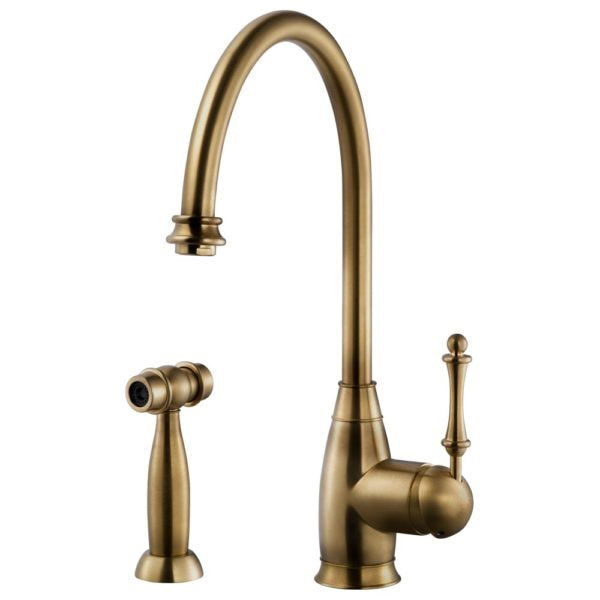 Hamat - EXSH-4000 AB - Traditional Brass Single Lever Faucet with Side Spray, Antique Brass