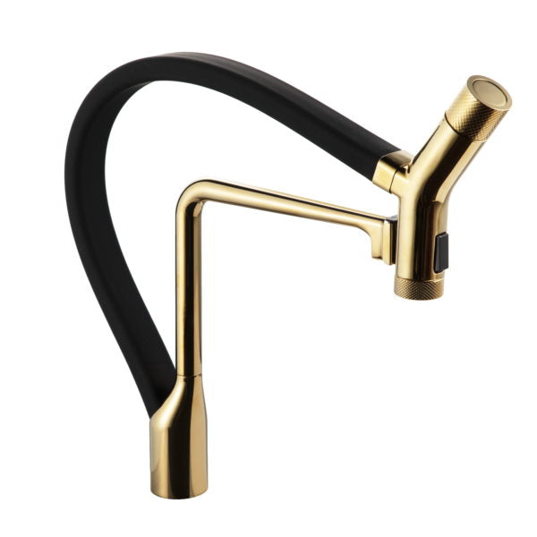 Hamat - KAPO-2000 PBB - Kanta Dual Function Hand Held Pull Off Kitchen Faucet in Polished Brass and Black Hose