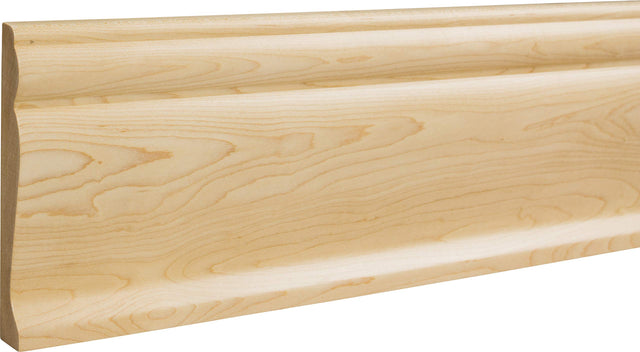 This wooden base moulding exhibits a waterfall of curves and smooth edges to enhance a modern room. The new Hardware Resources exclusive design will give any room a trendy completed look. Proudly manufactured in the USA. Features: Actual finish may not match the imagery posted for this specifc wood species Multiple wood species available to choose from to find the perfect fit for your space Exclusive Hardware Resources Design A quick sanding and it's ready for paint or stain Proudly made in the USA 1 Year Limited Manufacturer Warranty Specifcations: Depth: 3/4" Height: 4-3/4" Width: 96"