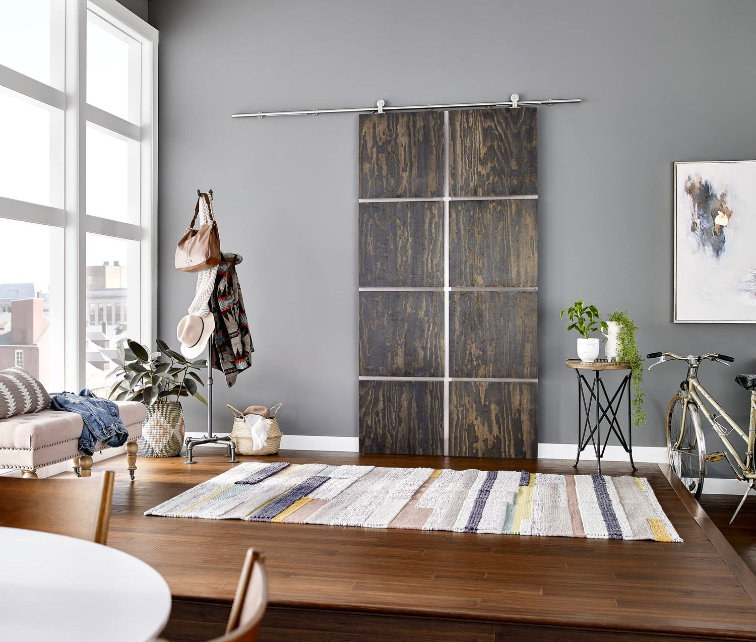 Barn Door Hardware Kit Contemporary Bar with Soft-close. Stainless Steel. 6 Foot Length.