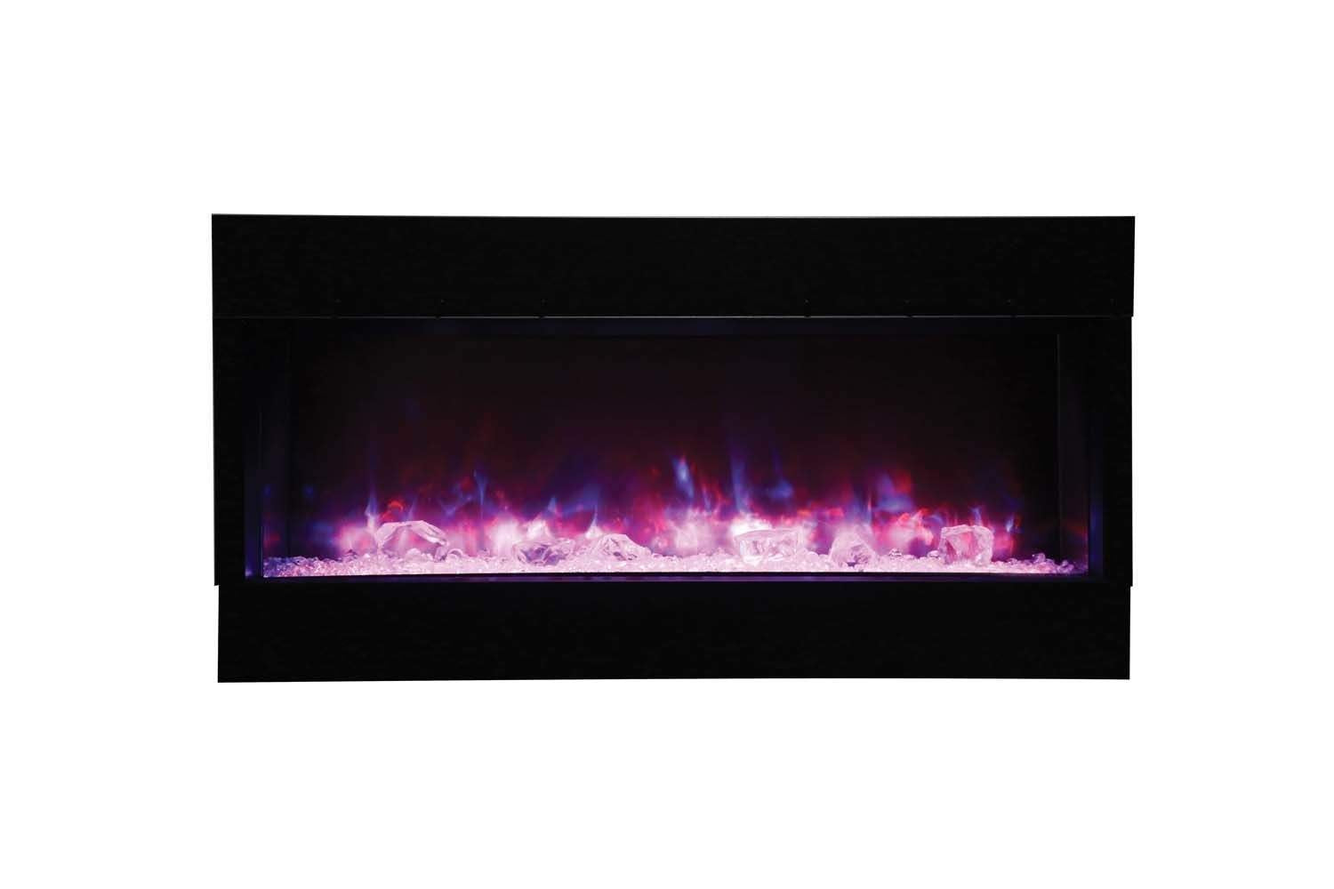 Amantii 50-TRV-SLIM Trv View Slim Smart Electric - 50" Indoor / Outdoor WiFi Enabled 3 Sided Fireplace Featuring a depth of 10 5/8", MultiFunction Remote Control, Multi Speed Flame Motor, and a 10 piece Birch Log Set