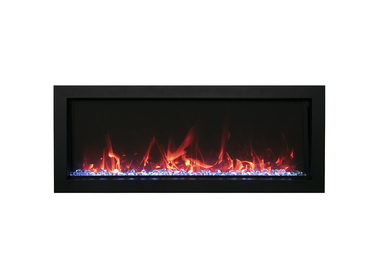 Amantii BI-50-XTRASLIM Panorama Xtraslim Full View Smart Electric - 50" Indoor /Outdoor WiFi Enabled Fireplace, featuring a MultiFunction Remote, Multi Speed Flame Motor, Glass Media & a Black Trim