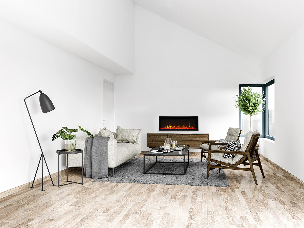 The Panorama Indoor/Outdoor Extra Slim Built In Electric Fireplace (BI-50-XTRASLIM), 50-Inch provides a premium heating alternative to a wood or gas fireplace. The Panorama Extra Slim series is an instant upgrade for any space and features an outdoor-compatible design for installation flexibility. The adjustable ambient LED canopy lighting adds a captivating touch to your room, while the cutting-edge flame presentation allows for effortless color changes. Enhance the flames with the included clear fire glass decorative media. Additional features such as an integrated 5,000 BTU heater and remote control add to an already impressive package. Furthermore, with the convenience of WiFi-enabled Smart technology, you can have ultimate control over the fireplace right from your smartphone. Enjoy the comfort of a fireplace without the hassle and cost of gas or wood when you add an Amantii electric fireplace to your home.Panorama Xtraslim Full View Smart Electric - 50" Indoor /Outdoor WiFi Enabled Fireplace, featuring a MultiFunction Remote, Multi Speed Flame Motor, Glass Media & a Black Trim