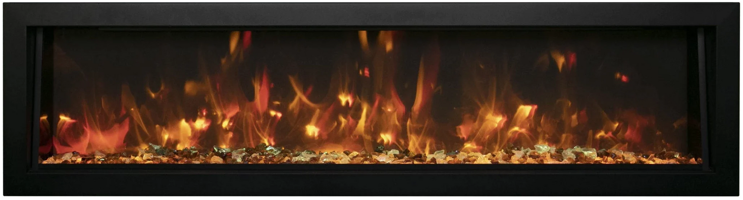 Amantii BI-72-DEEP-OD Panorama Deep Full View Smart Electric - 72" Indoor /Outdoor WiFi Enabled Fireplace, featuring a MultiFunction Remote, Multi Speed Flame Motor, Glass Media & a Black Trim