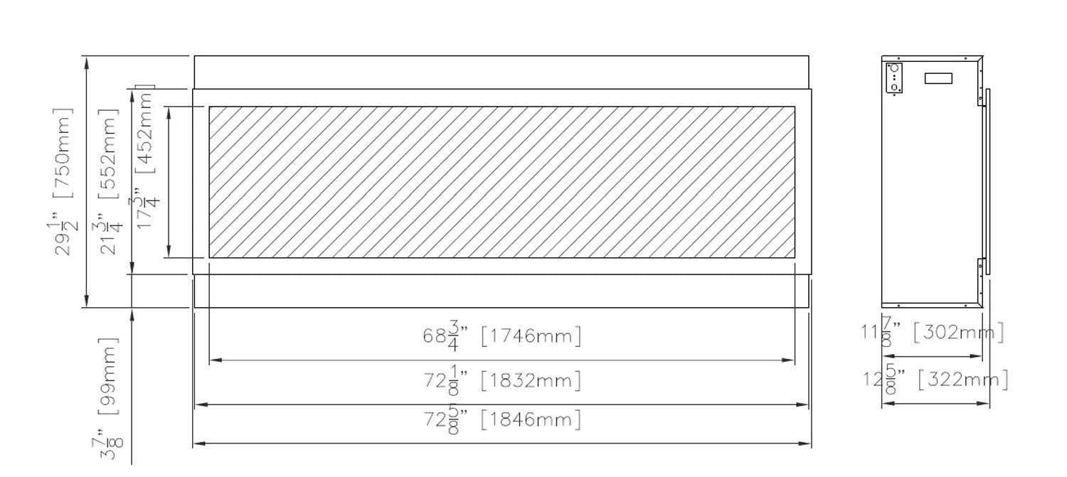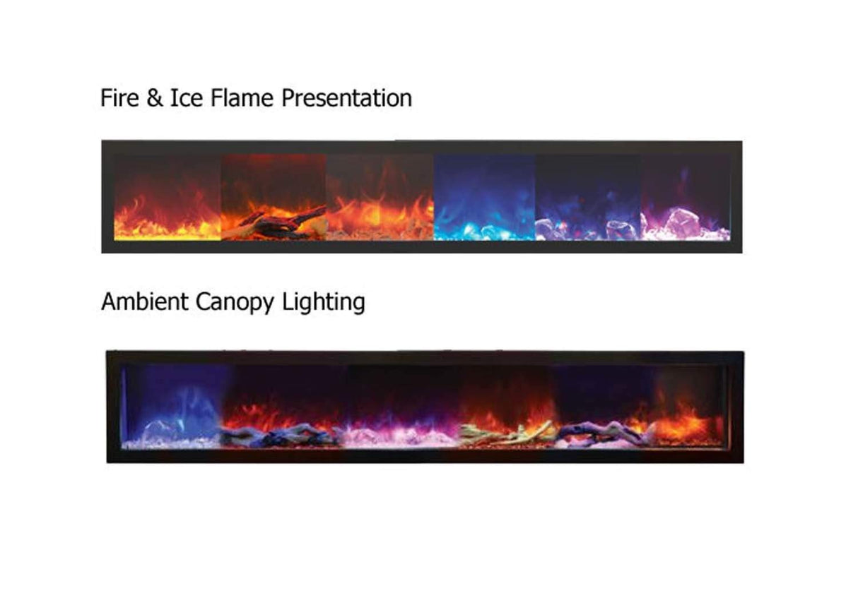 The Amantii BI-72-DEEP electric fireplace provides a great alternative to gas or wood burning fireplaces - and installation is much easier. Designed to be built in, the BI-72-DEEP offers a true clean face installation - allowing you to bring drywall right to the face, certainly an instant upgrade for any room. The customizable lighting features (5) different colored display options: blue, purple, rose, yellow, and orange. Included with this Amantii fireplace are the unique Ice Glass media gems, LED ember log set, and optional black steel surround to accommodate the 12 in. deep firebox. Enjoy the comfort of a fireplace without the hassle and cost of gas or wood, and benefit from the slim and sleek design of the Amantii BI-72-DEEP electric fireplace.Panorama Deep & Xtra Tall Full View Smart Electric - 72" Indoor /Outdoor WiFi Enabled Fireplace, featuring a MultiFunction Remote, Multi Speed Flame Motor, Glass Media & a Black Trim