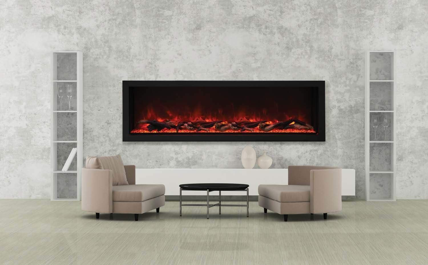 Amantii BI-72-DEEP-XT Panorama Deep & Xtra Tall Full View Smart Electric - 72" Indoor /Outdoor WiFi Enabled Fireplace, featuring a MultiFunction Remote, Multi Speed Flame Motor, Glass Media & a Black Trim
