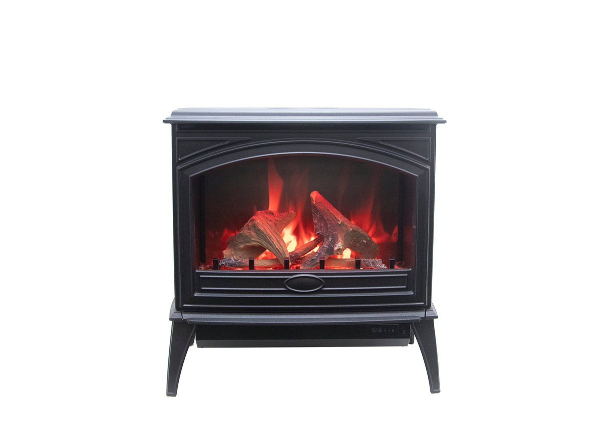 The Freestand E-50 fits beautifully as Corner Electric Fireplace.Lynwood Series - 50 cm Freestand Electric Stove Featuring a Cast Iron Frame and a 10 Piece Birch Log Set