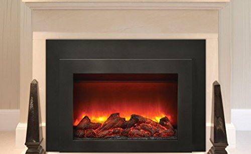 Sierra Flame Deep Insert Electric Fireplace with Black Steel Surround & Overlay - INS_FM-34 The INS_FM-34 is a Deep Electric Fireplace Insert with fashionable Black Steel Surround and Overlay. This larger electric insert is a terrific alternative for wood or gas inserts. Add new life to your existing wood or masonry fireplaces with Sierra Flames striking Flush Mount INS-FM-34 Electric Insert. The lively and life-like gradient flame is intensified by the visually impressive traditional log set that is included with the insert. Finished with a black steel surround and overlay, the versatile design of this insert will work with any style of décor in any room. The INS-FM-34 electric fireplace insert is perfect for most renovations or retrofits projects. This insert allows you to conveniently control the flame height as well as the intensity of the natural looking flame with the remote control that is included. This INS-FM-34 electric insert is ideal for zone heating and it easily heats a space 400 to 500 sq. ft. in size. Create your own style or design with an optional custom finish overlay. Great alternative for wood or gas inserts Perfect for renovations or retrofits 3 popular sizes Heat is vented upwards from overlay Hard wire ready Stunning 'Gradient' Flame Black Steel surround No grills 4 stage front and 4 stage internal back lighting Latest LED light technology Front and rear control for flame and heater included Approx. heating area 400 - 500 sq. ft. Plug on the left side Flame operates with or without heat Remote control for flame and heater 4 leveling legs on the underside Cord length - 76" Media: Large log set only