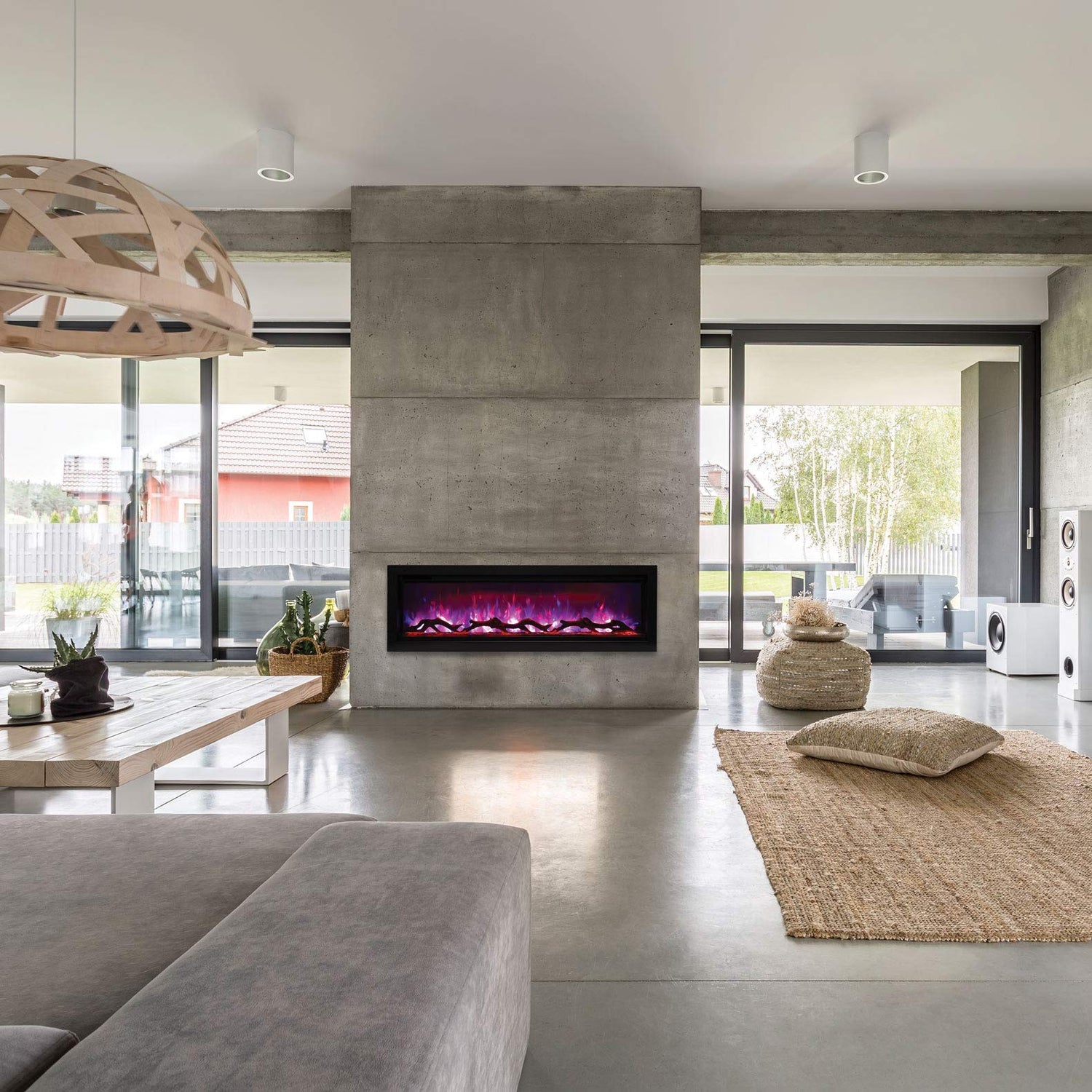 Amantii SYM-50 Symmetry Smart Electric 50" Indoor / Outdoor WiFi Enabled Built In Fireplace, Featuring a MultiFunction Remote Control , Multi Speed Flame Motor and a 10 piece Birch Log Set