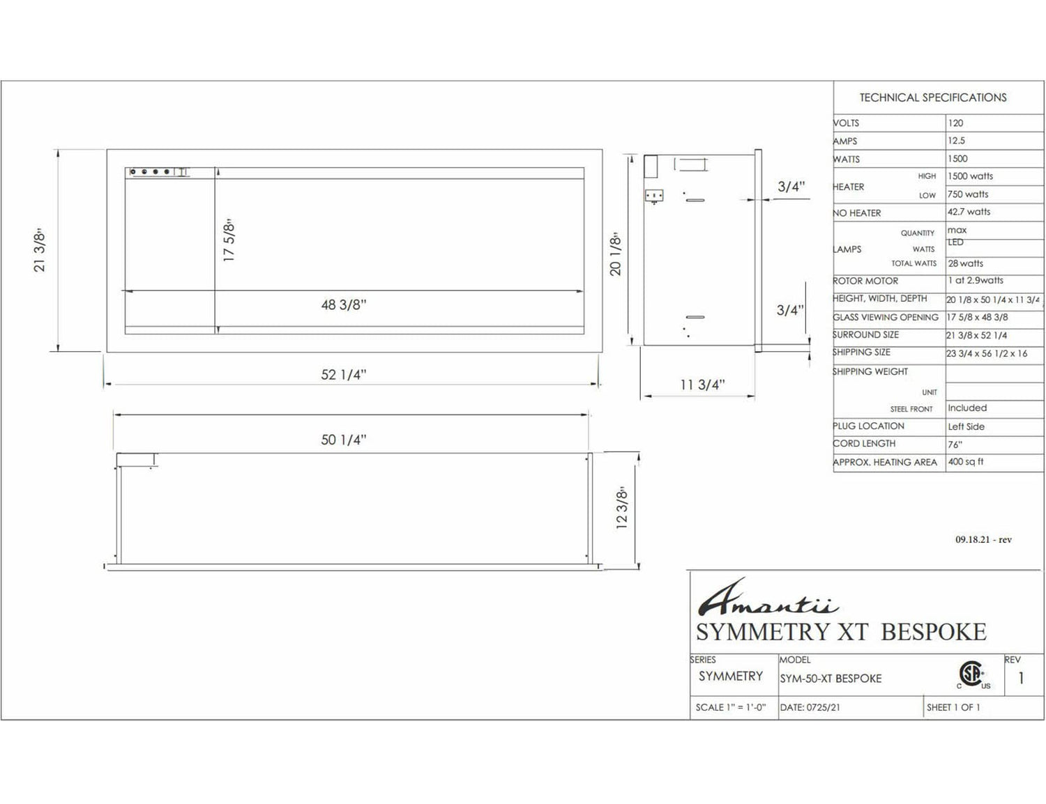 SYM-50-XT-BESPOKE - Extra Tall Electric Fireplace - by AmantiiSymmetry Xtra Tall Bespoke - 50" Indoor / Outdoor Electric Built In featuring, WiFi Compatibilty & Bluetooth Connectivity, MultiFunction Remote, and a Selection of Media Options