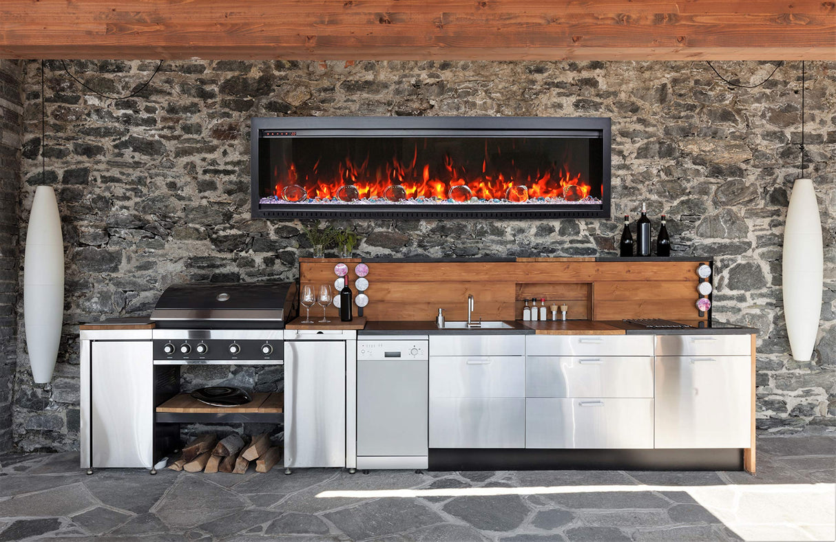 Due to the many different materials used to build walls, it is highly recommend that you consult with your local builder before installing the fireplace onto a wall.Symmetry Bespoke - 60" Indoor / Outdoor Electric Built In Fireplace featuring, WiFi Compatibilty & Bluetooth Connectivity, MultiFunction Remote, and a Selection of Media Options