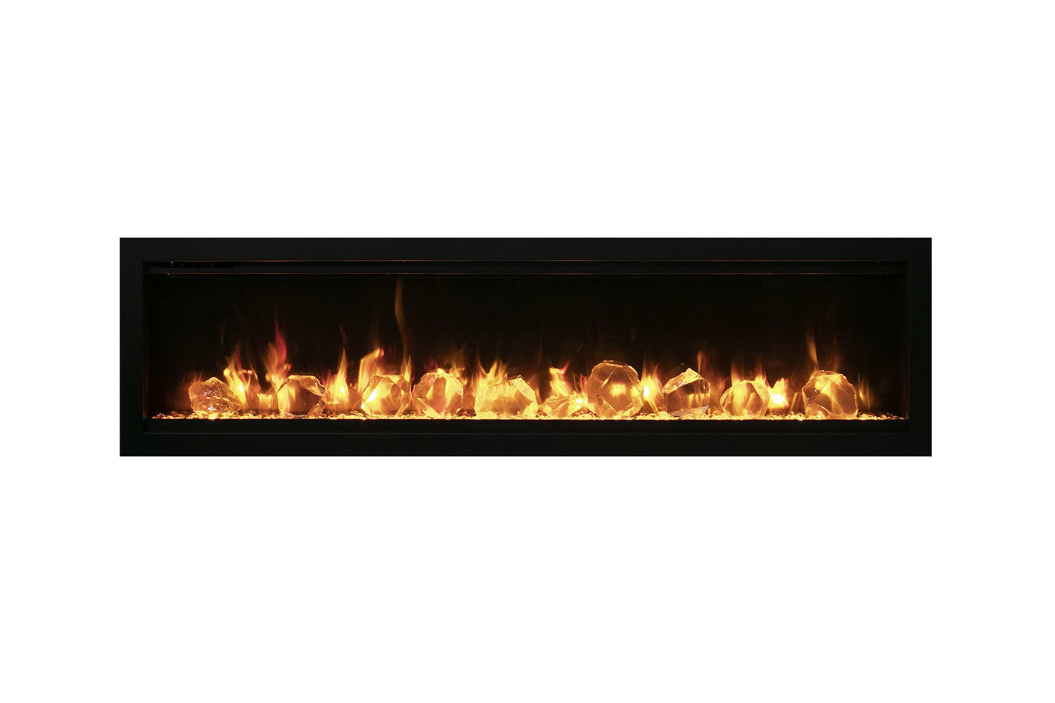 Amantii SYM-74 Symmetry Smart Electric 74" Indoor / Outdoor WiFi Enabled Built In Fireplace, Featuring a MultiFunction Remote Control , Multi Speed Flame Motor and a 10 piece Birch Log Set