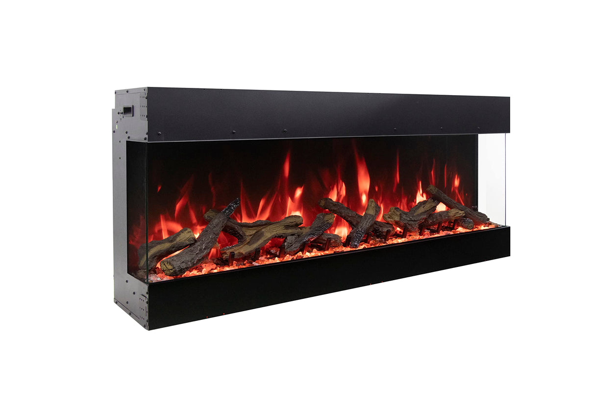 Come with a choice of a Design Media kit - Driftwood, Birch, Rustic, Oak or Split Log or ICE media kit.Tru View Bespoke - 55" Indoor / Outdoor 3 Sided Electric Fireplace Featuring a 20" Height, WiFi Compatibility, Bluetooth Connectivity, Multi Function Remote, and a Selection of Media Options
