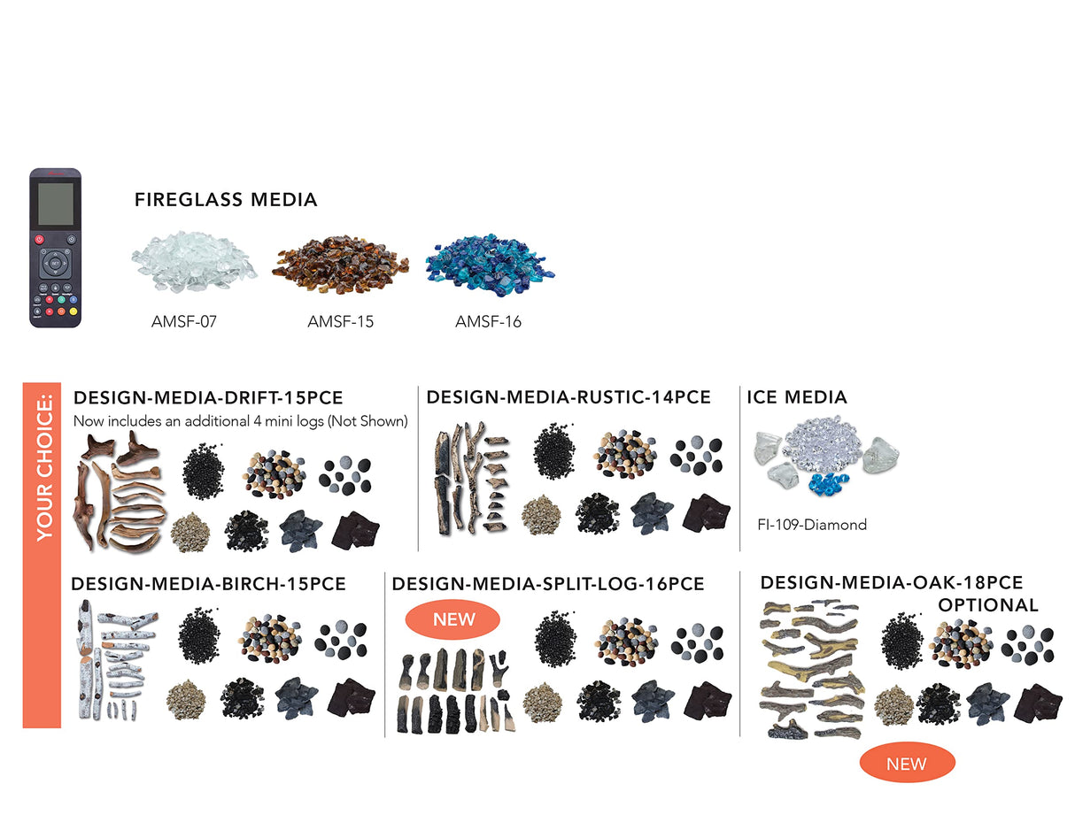 Come with a choice of a Design Media kit - Driftwood, Birch, Rustic, Oak or Split Log or ICE media kit.Tru View Bespoke - 85" Indoor / Outdoor 3 Sided Electric Fireplace Featuring a 20" Height, WiFi Compatibility, Bluetooth Connectivity, Multi Function Remote, and a Selection of Media Options
