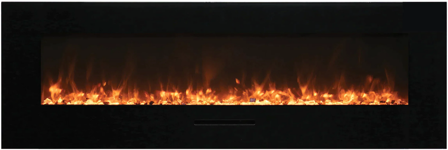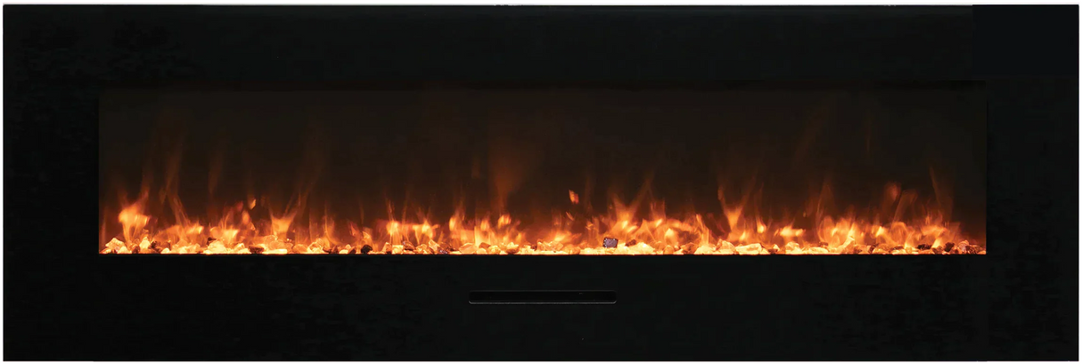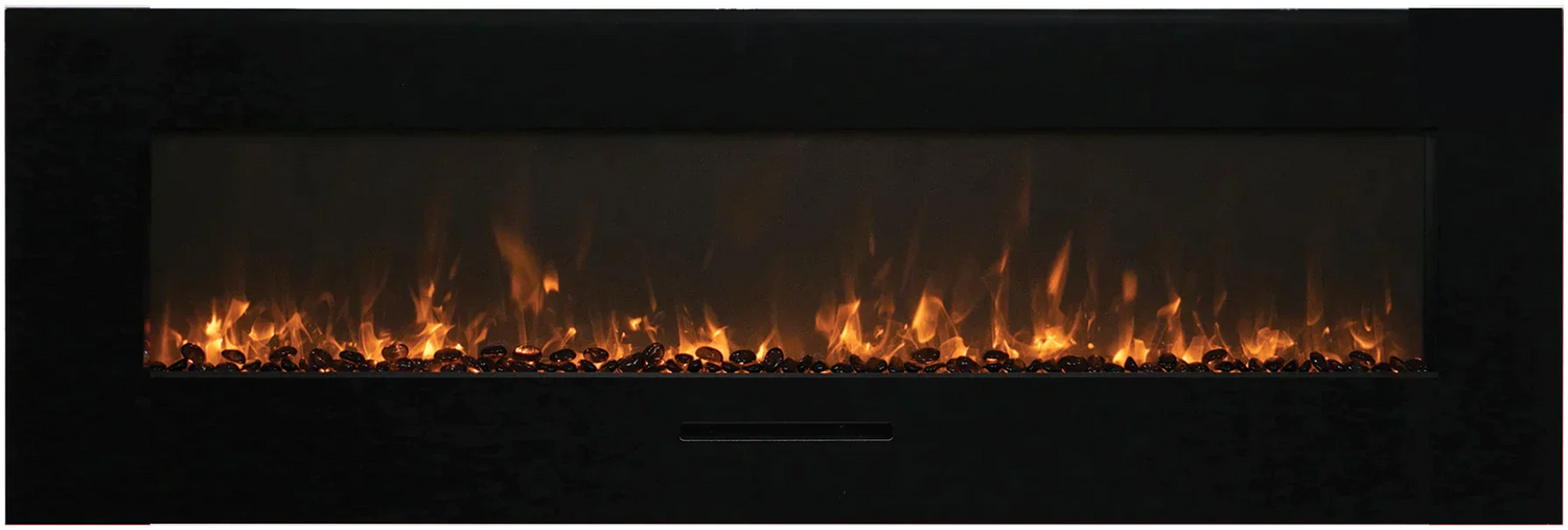 The WM-FM-BG is a stunning electric fireplace featuring Amantii’s exclusive flame presentation. The WM-FM series models can be built in flush or wall mounted with included brackets. Heat is emitted from a single slot in the face of the surround. 13 colors of surround back-lighting illuminate spaces creating even more ambiance. All Built-In Flush Mount / Wall Mount fireplaces come standard with a driftwood style log set and optional decorative media of EMBER are available for purchase. The standard surround box for the WM-FM-BG fireplace is black - White glass surrounds are available for additional purchase.Wall Mount/ Flush Mount Smart Electric 72" Indoor / Outdoor WiFi Enabled Fireplace , Featuring a MultiFunction Remote Control , Multi Speed Flame Motor