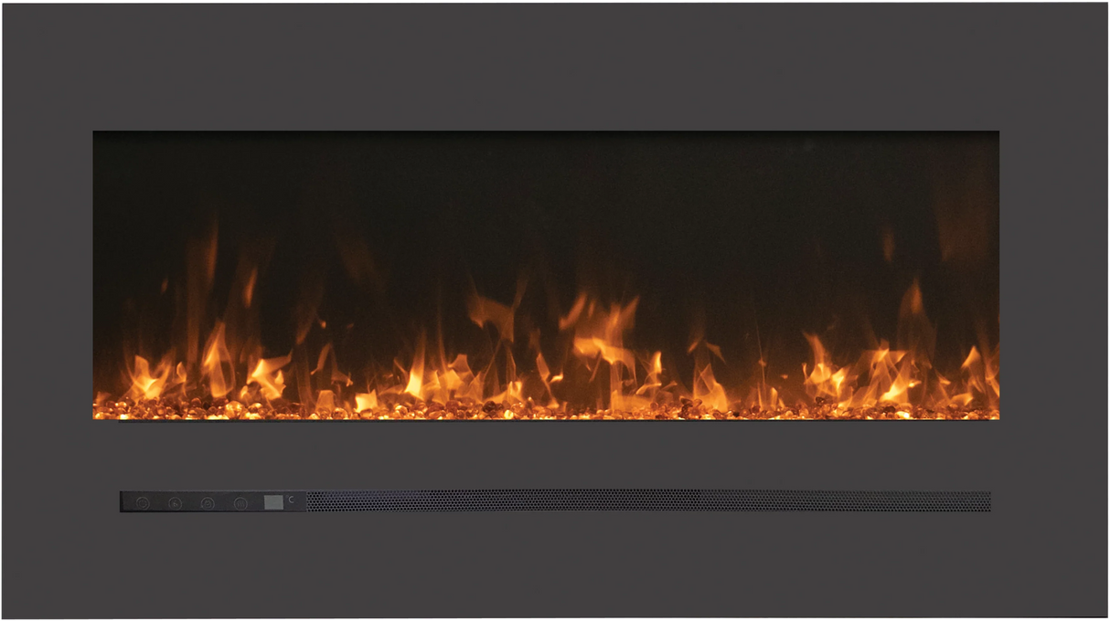 The Sierra Flame Electric Fireplace with Surround (WM-FML-26-3223-STL), 26-Inch provides a great alternative to gas or wood burning fireplaces. Easy installation means you'll enjoy immediate gratification with a simple setup. This unit can be installed as a recessed built-in unit or as a wall mount unit-perfect for any installation situation! To create an impressive flame display, this fireplace features Amantii's FIRE & ICE flame presentation, offering multi-color flame options at the touch of a button. Thirteen back-lit surround colors enhance the ambiance of this unit, as well. Beyond its stylish appearance, this unit boasts a 4,800 BTU heater capable of comfortably heating an area between 400 and 500 square feet. To top it all off, this unit features an easy-to-use remote control, so you can control all aspects of your fireplace with the touch of a button!Wall Mount / Flush Mount - 26" Electric Fireplace with a Steel Surround and Glass Media