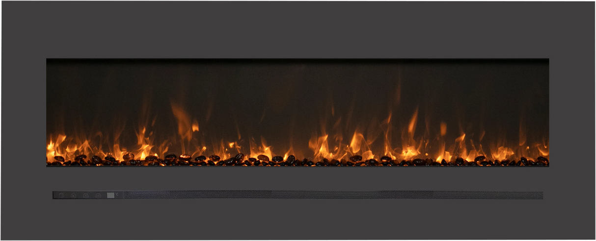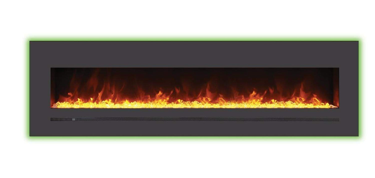 The Sierra Flame WM-FML-72-7823-STL 78-Inch Electric Fireplace by Amantii provides a great alternative to gas or wood burning fireplaces. This fireplace was designed with the customer in mind, and can be recessed into a wall or wall mounted during installation. To create an impressive flame display, this fireplace features Amantii's FIRE & ICE flame presentation, offering multi-color flame options at the touch of a button. Thirteen back-lit surround colors enhance the ambiance of this unit, as well. Beyond its stylish appearance, this unit boasts a 4,800 BTU heater capable of comfortably heating an area between 400 and 500 square feet. To top it all off, this 72-inch unit features an easy-to-use remote control, so you can control all aspects of your fireplace with the touch of a button! (WM-FML-72-7823-STL) Deep Charcoal Colored Steel Surround includedWall Mount / Flush Mount - 72" Electric Fireplace with a Steel Surround and Glass Media