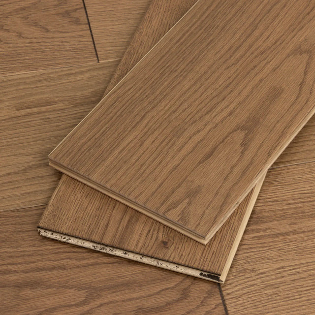- Planks feature a top layer of premium American white oak over a strengthening core of sustainable eucalyptus and acacia. This design boosts dimensional stability while getting as much as 4x as much flooring from each tree.