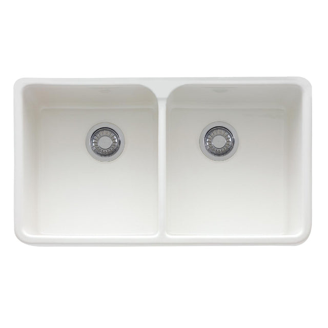 FRANKE MHK720-31WH Manor House 31.25-in. x 19.75-in. White Apron Front Double Bowl Fireclay Kitchen Sink - MHK720-31WH In White