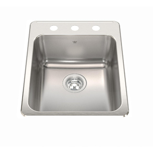 KINDRED QSLA2217-8-3N Steel Queen 17.25-in LR x 22-in FB x 8-in DP Drop In Single Bowl 3-Hole Stainless Steel Kitchen Sink In Satin Finished Bowl with Mirror Finished Rim