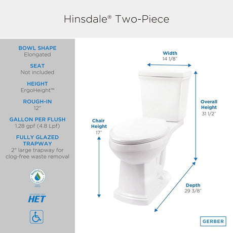Regular price $5531UnavailableGerber G0020181 White Hinsdale 1.28 Gpf 12" Rough-in Two-piece Elongated...