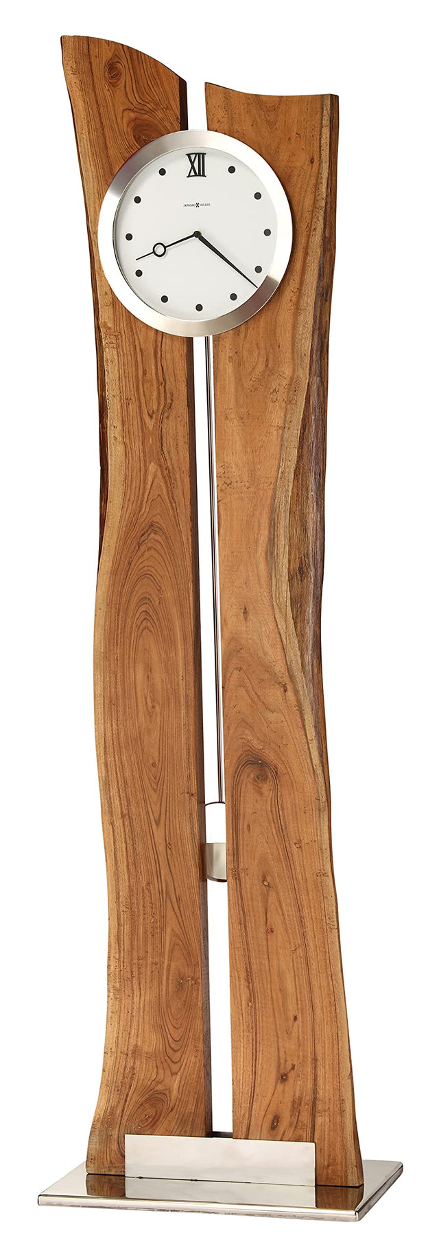 FLOOR CLOCK: This Otto Floor Clock features two planks of rustic live edge Acacia hardwood slabs with knots, raw edges, and machine marks to be ideal vertical decor to compliment your home. With the highly polished and reflective metal finishes, natural blemishes are normal to the design.
