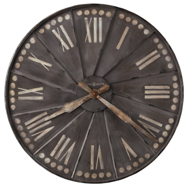 DescriptionThis Stockard Wall Clock by Howard Miller is made of metal featuring recessed sections that display the numerals. Aged white Roman numerals, hands, and bold minute track on an antique charcoal finish for an aged appearance. Quartz movement requires one AA sized battery (not included).Howard C. Miller founded the company back in 1926 and is based out of Zeeland, Michigan. Howard Miller understood the need to create quality and value in each product. From gaining the title Worlds Largest Grandfather Clock Manufacturer in the 1960s, to creating collectors cabinets in 1989, all the products have the same attention to detail and handcrafted ideals. Hundreds of items are available from portable alarm clocks to desk sets to wall and mantel clocks to collectors cabinets to limited edition grandfather clocks.Howard Miller offers a warranty which is our commitment that our products have been manufactured using the finest materials and have been thoroughly inspected. Our warranty is available exclusively through authorized retailers only. Please inquire with any 3rd party seller prior to purchase to confirm warranty eligibility. Purchases made from unauthorized retailers will not be eligible for warranty services through Howard Miller or its authorized service center network.