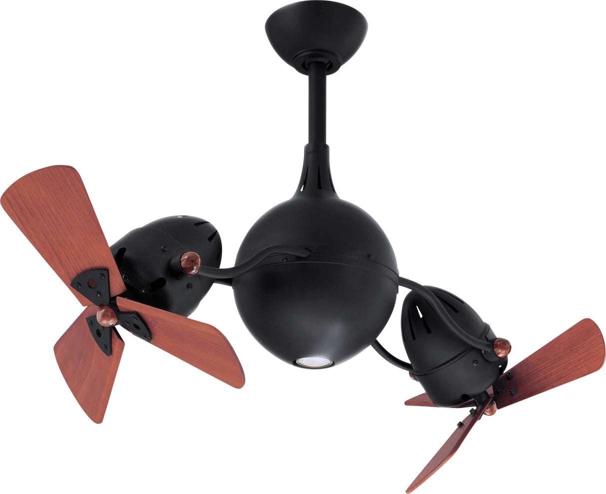 Matthews Fan AQ-BK-WD Acqua 360° rotational 3-speed ceiling fan in matte black finish with solid sustainable mahogany wood blades and light kit.