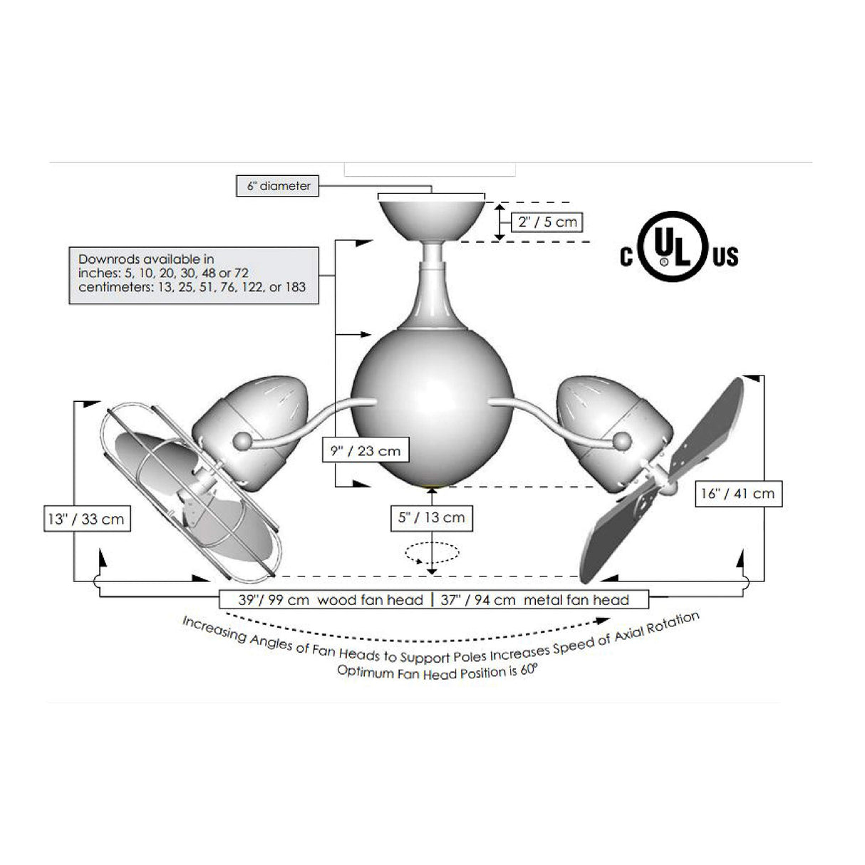 The Acqua 360° rotational fan is thoughtfully designed to resemble the molecular structure of water, Earth’s most precious resource. The Acqua offers fluid lines and quiet axial rotation. Its fan heads can be infinitely positioned in 180-degree arcs for optimum air movement; the greater the angles of the motors to the horizontal support rods (up or down), the faster the axial rotation. A slow, controlled axial rotation is achieved by both fan head position and fan blade speed. Matthews rotational fans circulate heat and air-conditioning more efficiently than traditional paddle fans. Constructed of cast aluminum and heavy stamped steel, the Acqua carries a limited lifetime warranty.