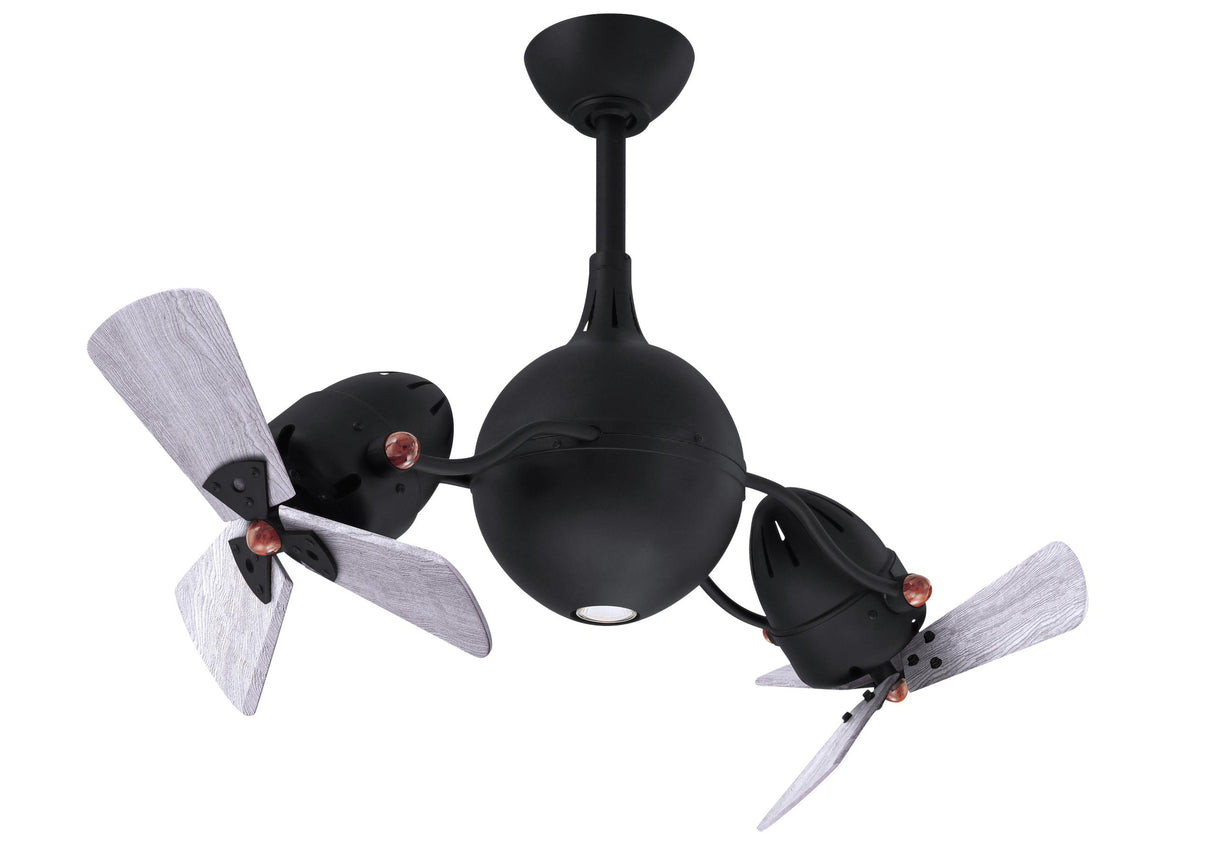 Matthews Fan AQ-BK-WDBW Acqua 360° rotational 3-speed ceiling fan in matte black finish with solid barn wood blades and light kit.