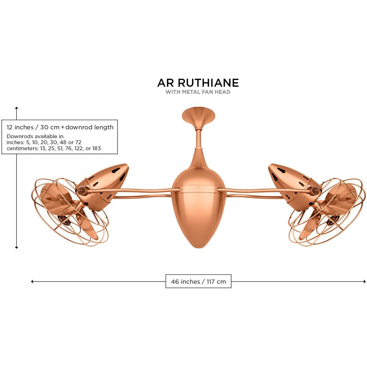 Matthews Fan AR-BN-MTL Ar Ruthiane 360° dual headed rotational ceiling fan in brushed nickel finish with metal blades.