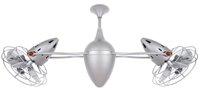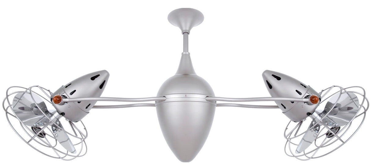 Matthews Fan AR-BN-MTL-DAMP Ar Ruthiane 360° dual headed rotational ceiling fan in brushed nickel finish with metal blades for damp location.